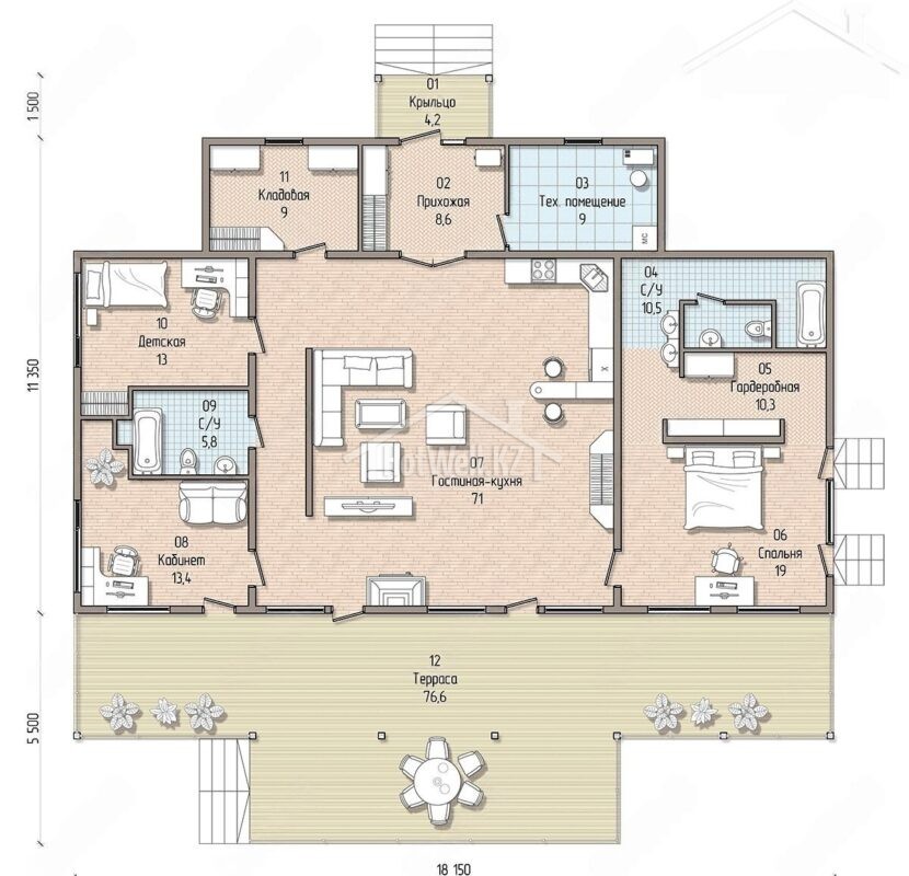 Строительство дома проект Б-157 компанией HotWell.KZ под ключ за 2,5 мес.