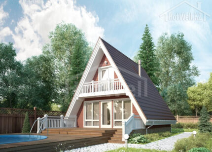 Баня с мансардой 10 на 6 метров, общей площадью 100 м2, из СИП панелей, с сауной, террасой и балконом.