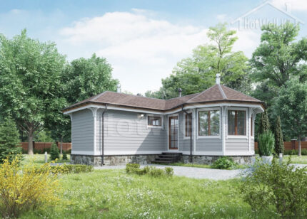 Одноэтажная баня 8 на 8 метров, общей площадью 38 м2, из СИП панелей, с эркером.