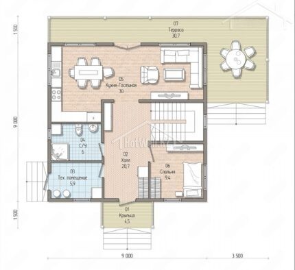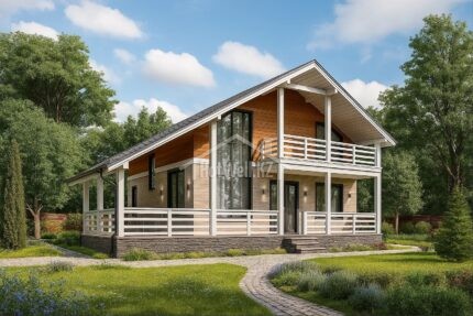 Данный проект дома основан на основе популярного проекта А-100, разница в том что у данного проекта вынесено за пределы дома тех помещение с тамбуром. Проект имеет большую гостинную на первом этаже 22 м2, отдельную кухню. Второй этаж имеет три спальни и сан узел. Тип крыши двускатная. Очень хороший и популярный проект.