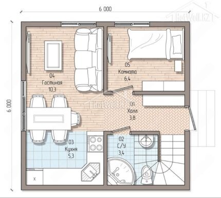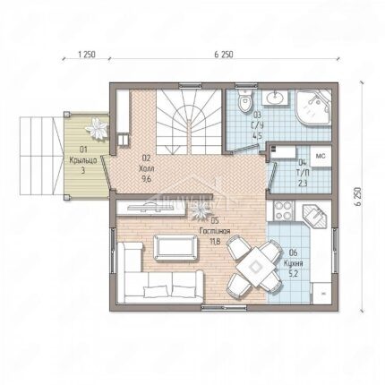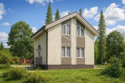Данный проект дома основан на основе популярного проекта А-100, разница в том что у данного проекта вынесено за пределы дома тех помещение с тамбуром. Проект имеет большую гостинную на первом этаже 22 м2, отдельную кухню. Второй этаж имеет три спальни и сан узел. Тип крыши двускатная. Очень хороший и популярный проект.