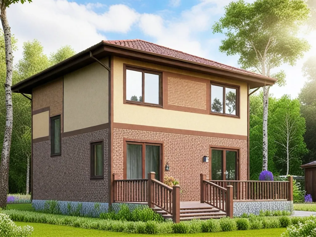 Двухэтажный дом 12 на 8 метров, общей площадью 112 м2, из СИП панелей, с террасой и спальней на первом этаже.