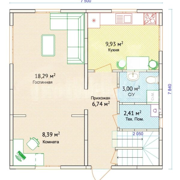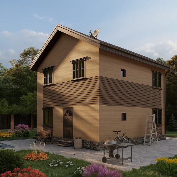 Дом с мансардой 11 на 9 метров, общей площадью 171 м2, из СИП панелей, с бойлерной, террасой и спальней на первом этаже.