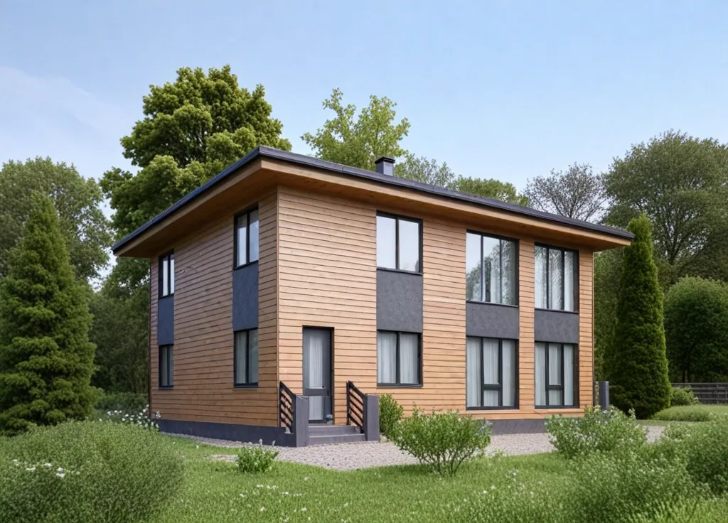 Двухэтажный дом 11 на 9 метров, общей площадью 210 м2, из СИП панелей, с бойлерной и вторым светом.