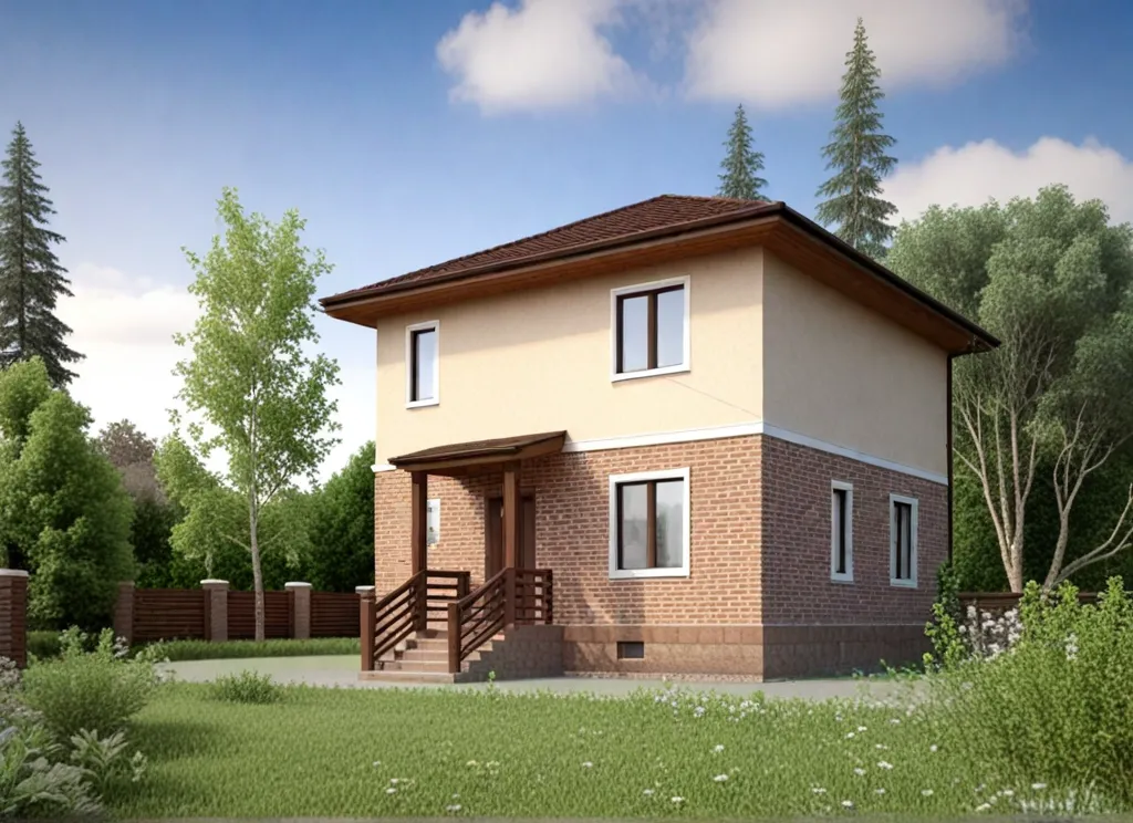 Двухэтажный дом 8 на 8 метров, общей площадью 124 м2, из СИП панелей, со спальней на первом этаже.