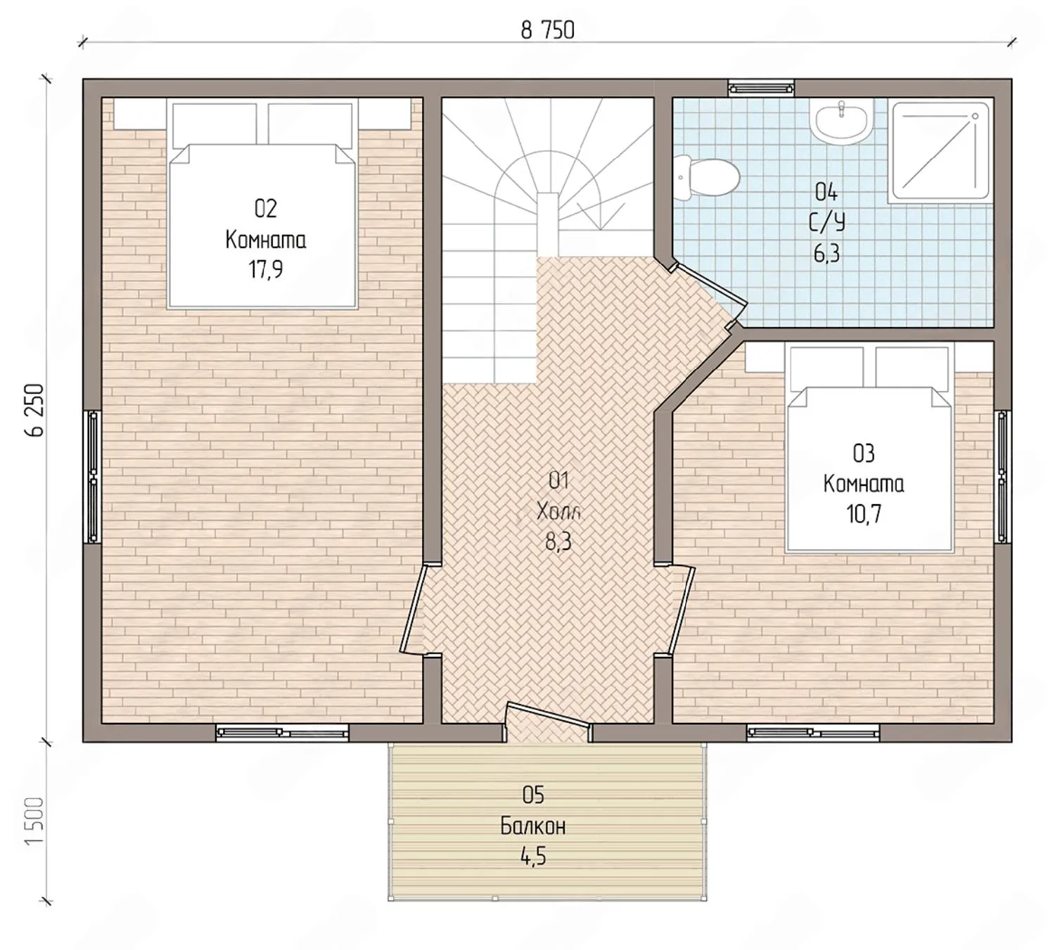 Двухэтажный дом 9 на 8 метров, общей площадью 118 м2, из СИП панелей, с балконом.