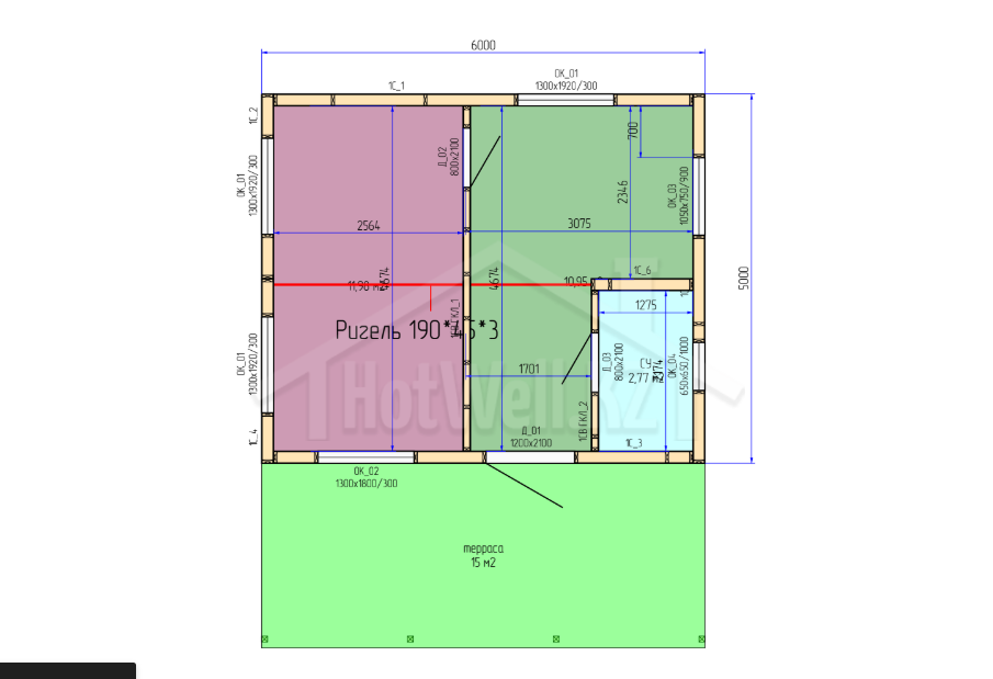 Дом выполнен в одном этаже, что делает его удобным и практичным в эксплуатации. Несмотря на небольшую площадь, планировка позволяет рационально использовать пространство и разместить необходимые жилые зоны.