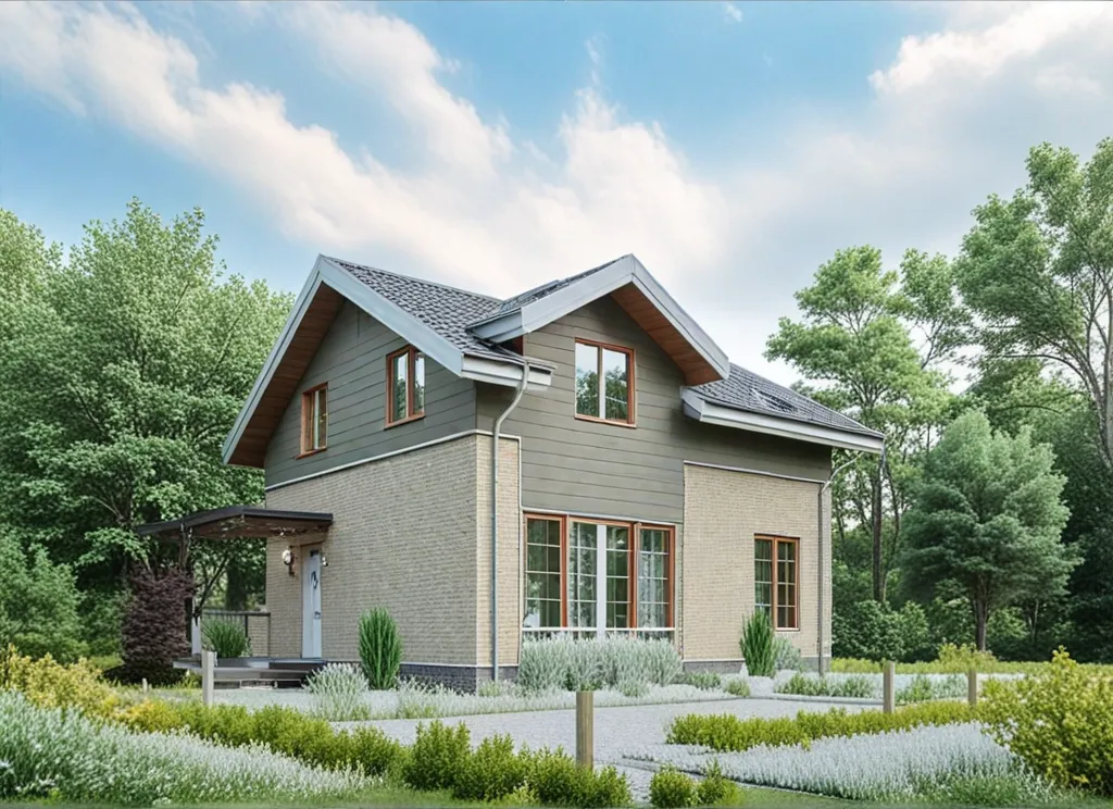 Дом с мансардой 8 на 8 метров, общей площадью 121 м2, из СИП панелей.