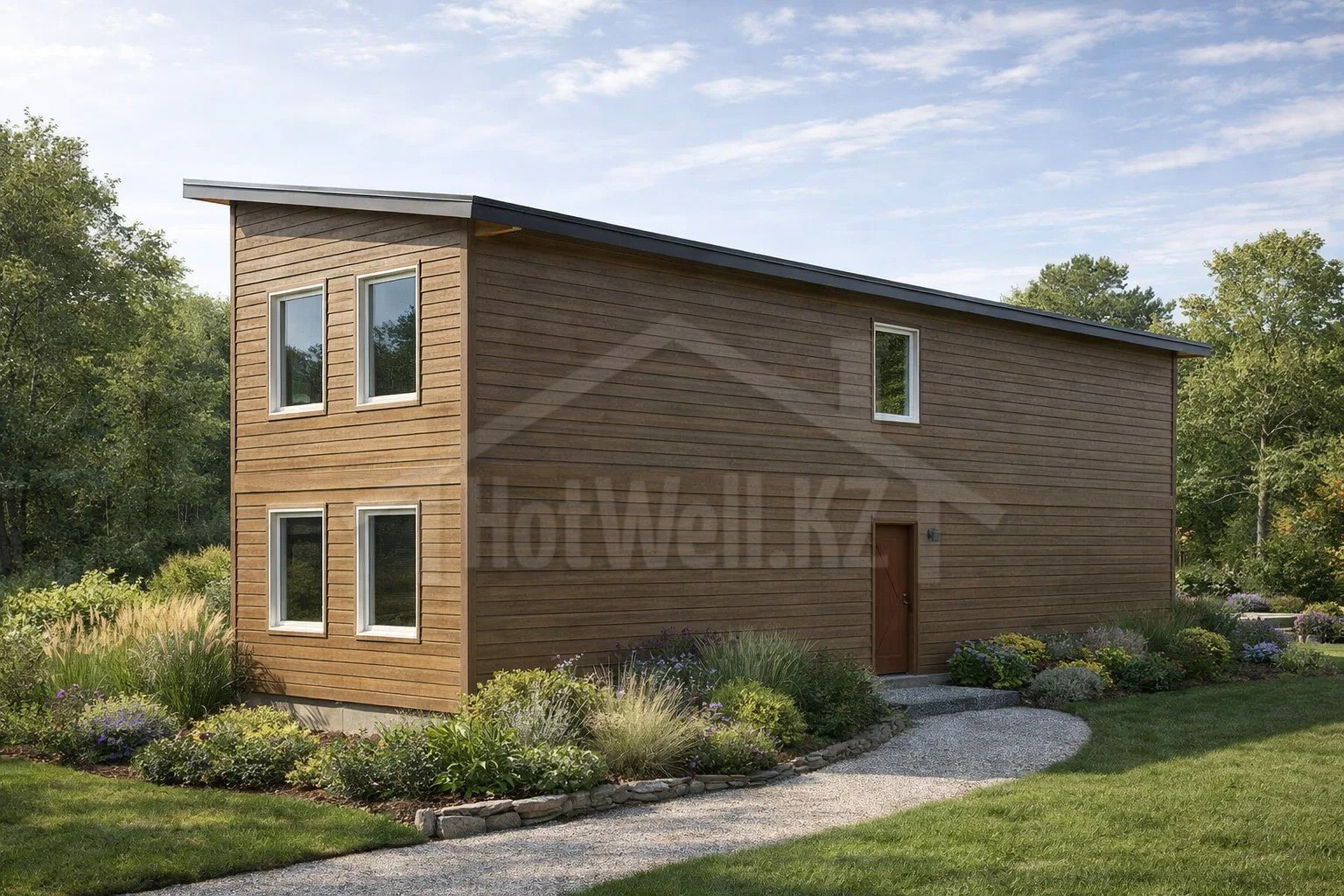 Дом имеет два этажа, благодаря чему можно грамотно разделить зоны — на первом этаже разместить кухню, гостиную и общие помещения, а на втором этаже расположить спальни и личные комнаты.