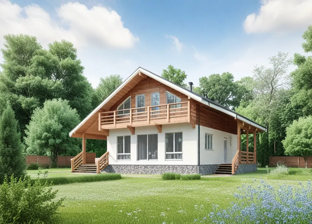 Дом с мансардой 13 на 10 метров, общей площадью 162 м2, из СИП панелей, с бойлерной, террасой, балконом и спальней на первом этаже.