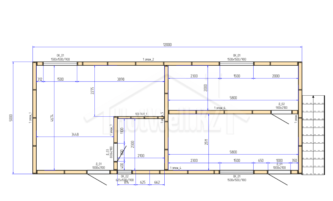 Высота стен 3 метра на каждом этаже обеспечивает просторные помещения, хорошую вентиляцию и комфортное внутреннее пространство. Четырехскатная крыша устойчива к ветровым и снеговым нагрузкам, что особенно важно для эксплуатации в условиях Казахстана.