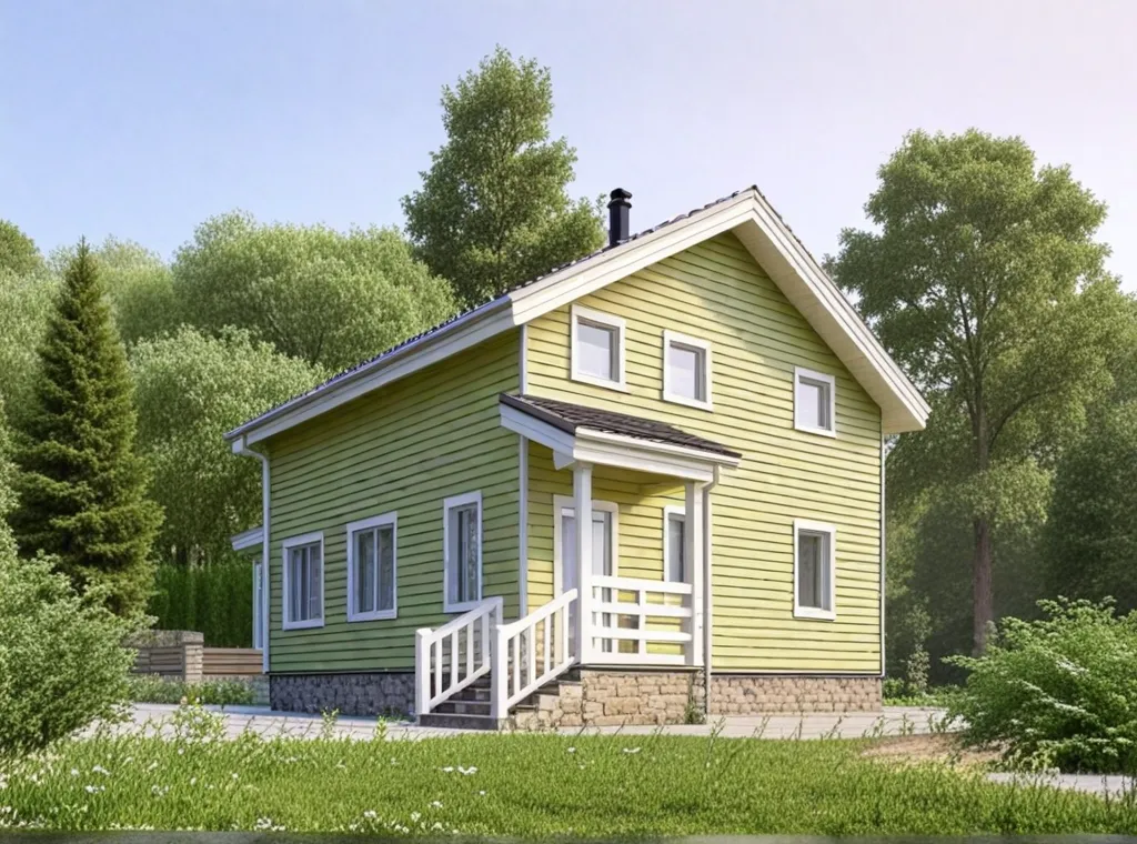 Дом с мансардой 9 на 8 метров, общей площадью 122 м2, из СИП панелей, со спальней на первом этаже.
