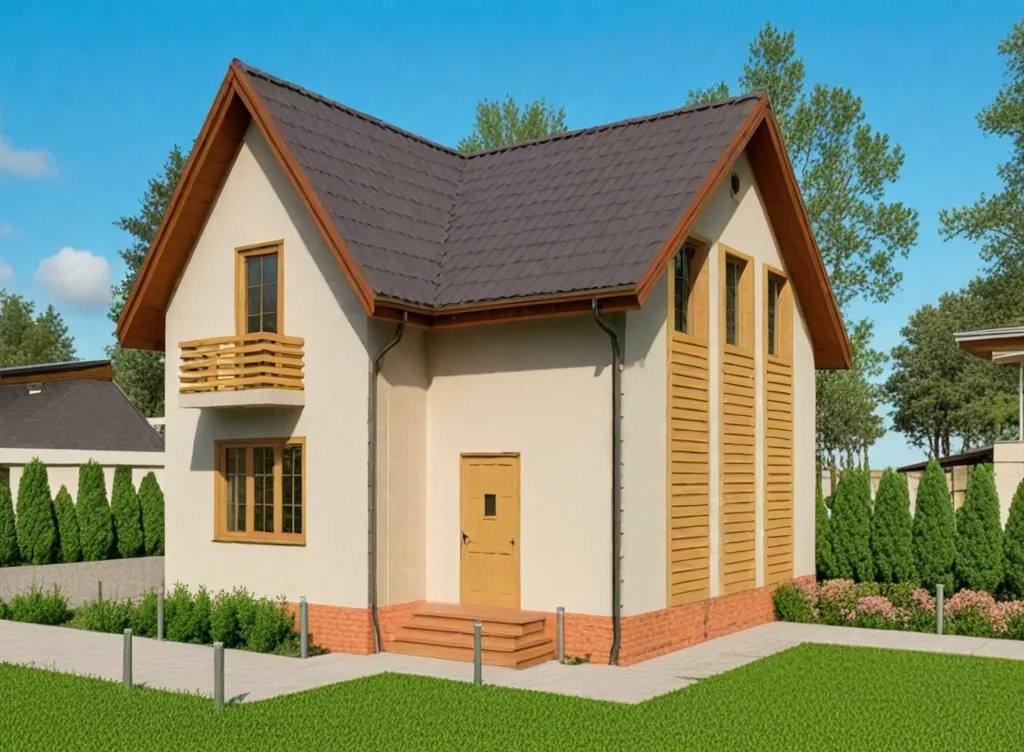 Дом с мансардой 10 на 8 метров, общей площадью 131 м2, из СИП панелей, с балконом.