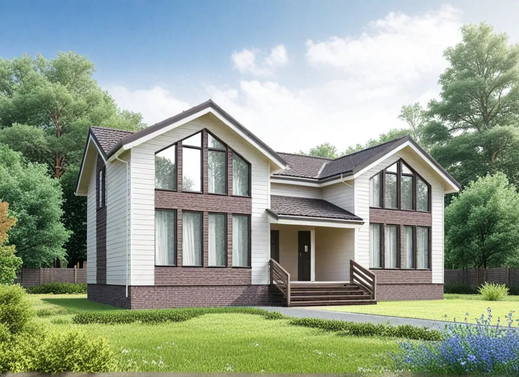 Дом с мансардой 14 на 8 метров, общей площадью 204 м2, из СИП панелей.