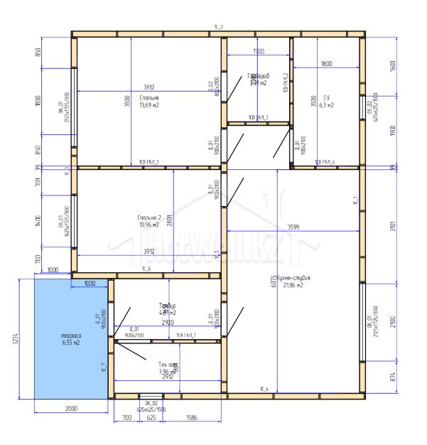 Дополнительным преимуществом проекта является уютная терраса площадью 6,5 м², где можно обустроить зону отдыха, место для утреннего кофе или семейных вечеров на свежем воздухе.
