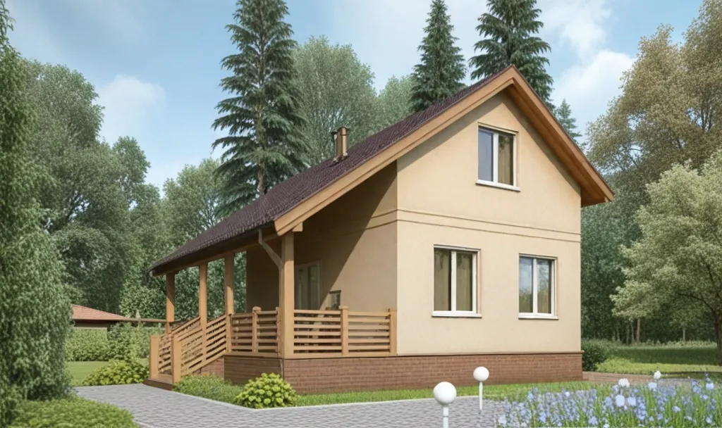 Дом с мансардой 8 на 8 метров, общей площадью 116 м2, из СИП панелей, с сауной и террасой.