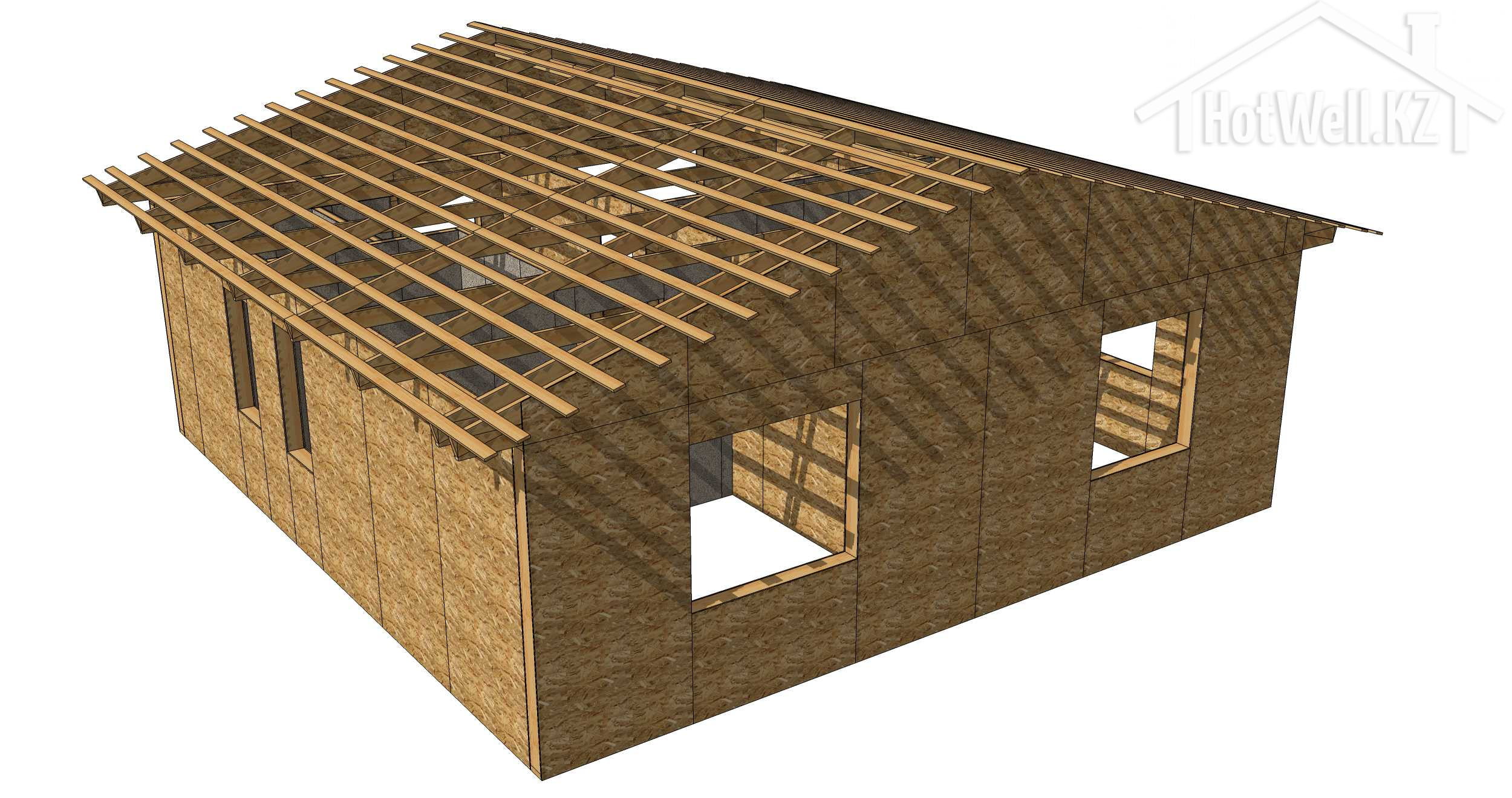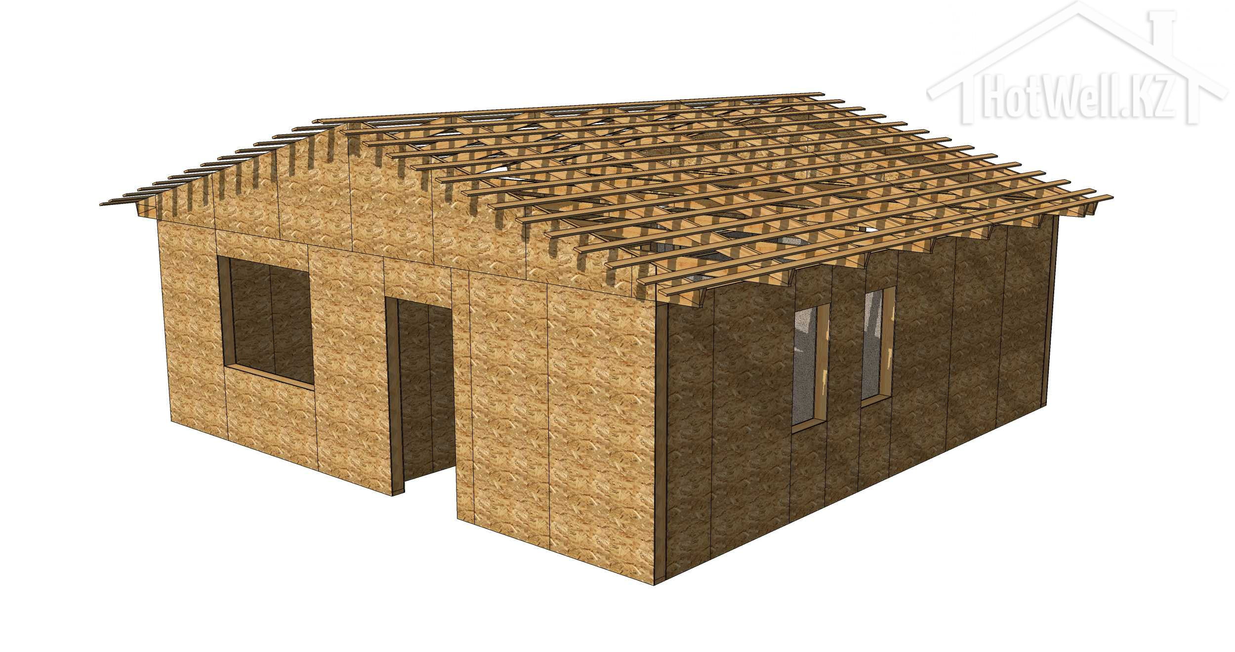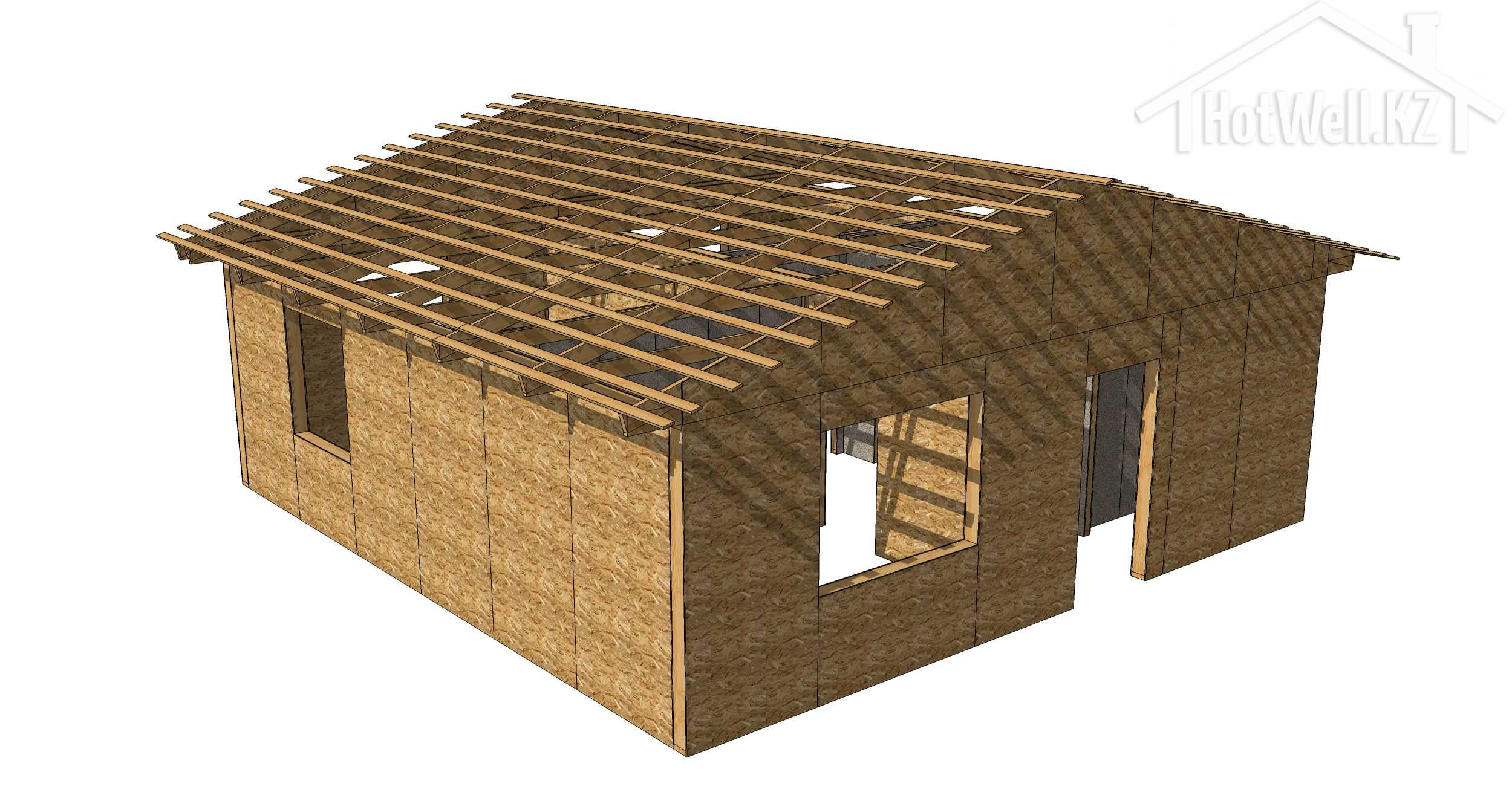 — **Крыша:** Крыша дома имеет 2 скатную форму, что помогает отводить воду и снег, обеспечивая надежную защиту от атмосферных воздействий.