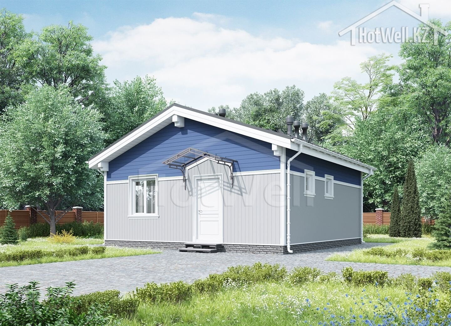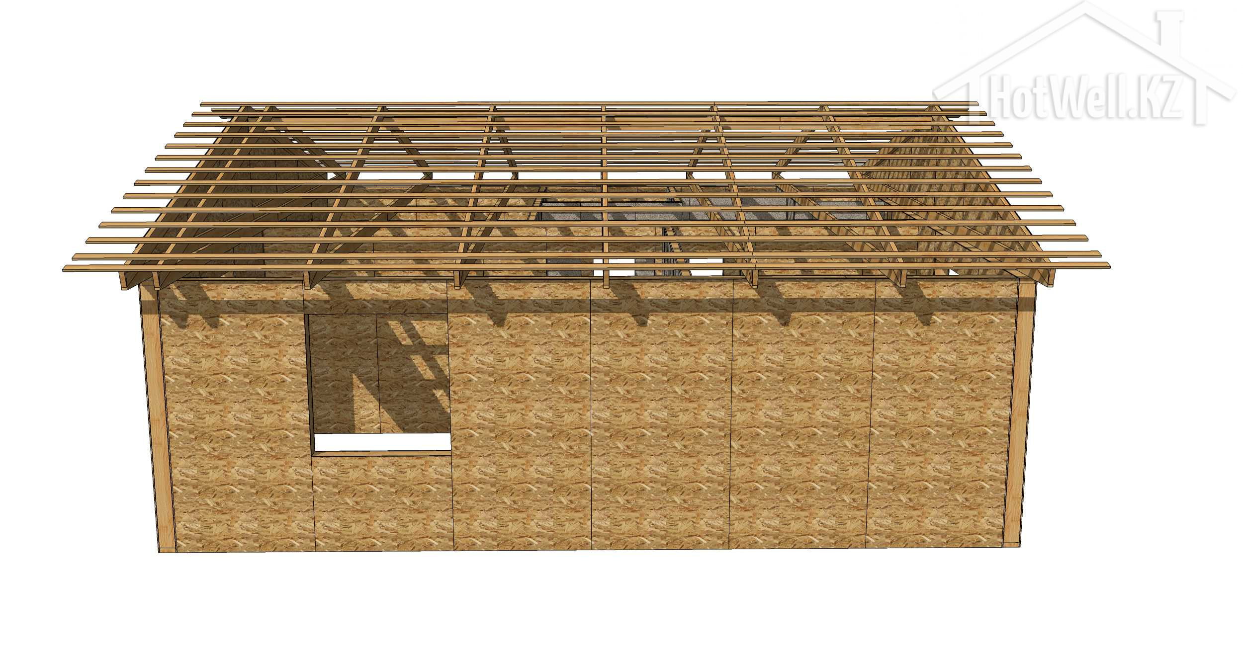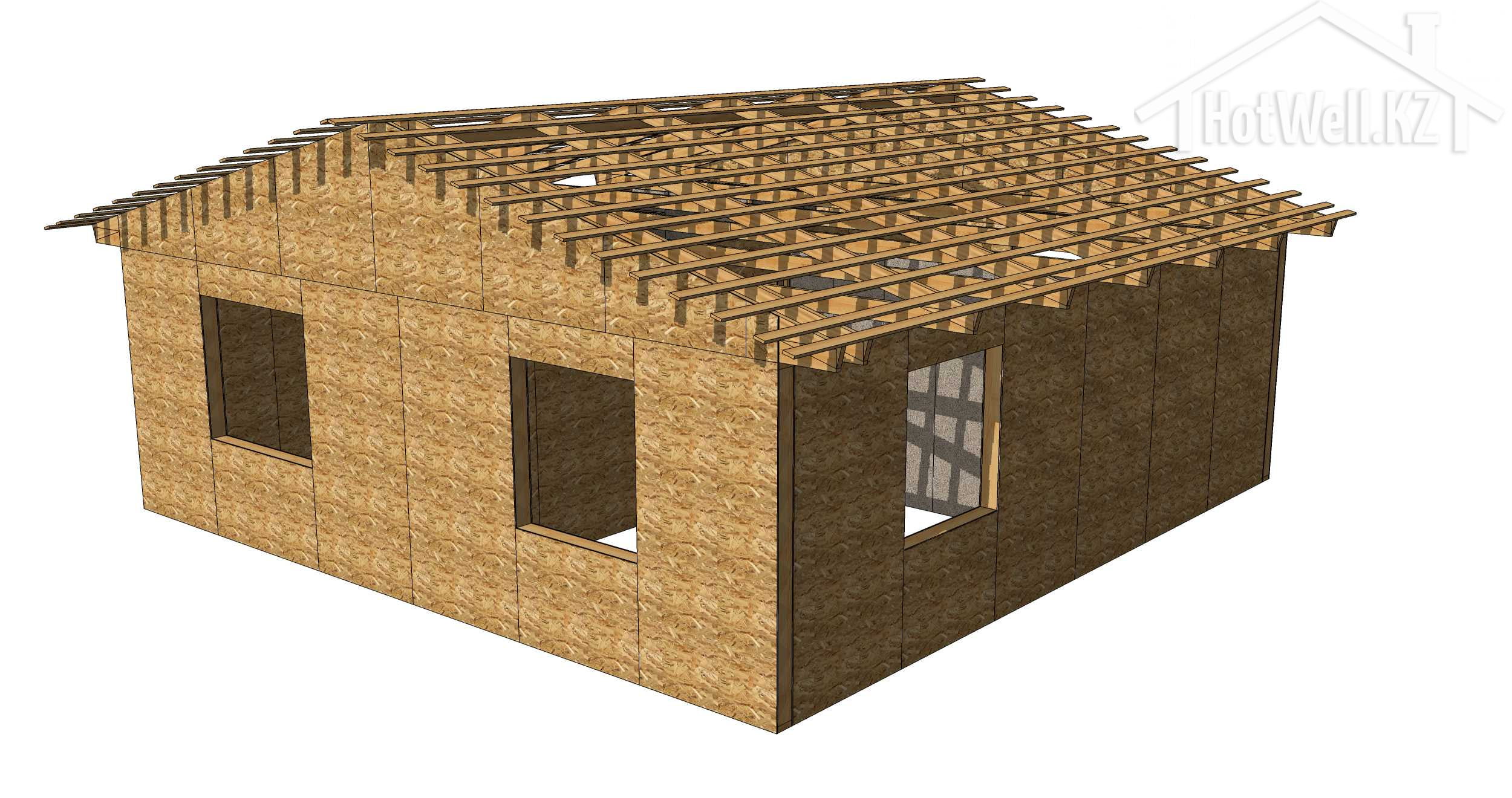 — **Крыша:** Крыша дома имеет 2 скатную форму, что помогает отводить воду и снег, обеспечивая надежную защиту от атмосферных воздействий.