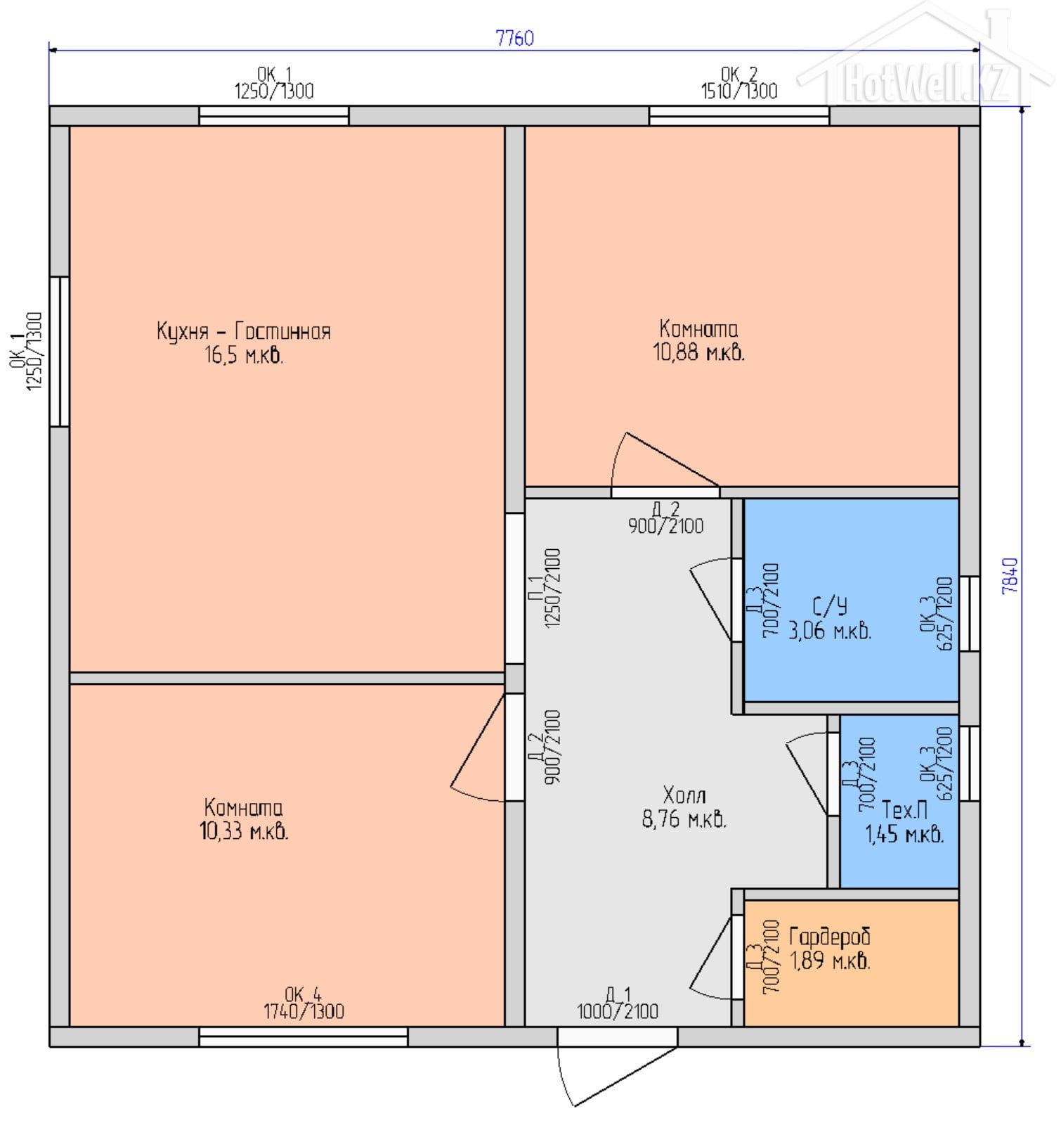 7,7 на 7,9 м. |