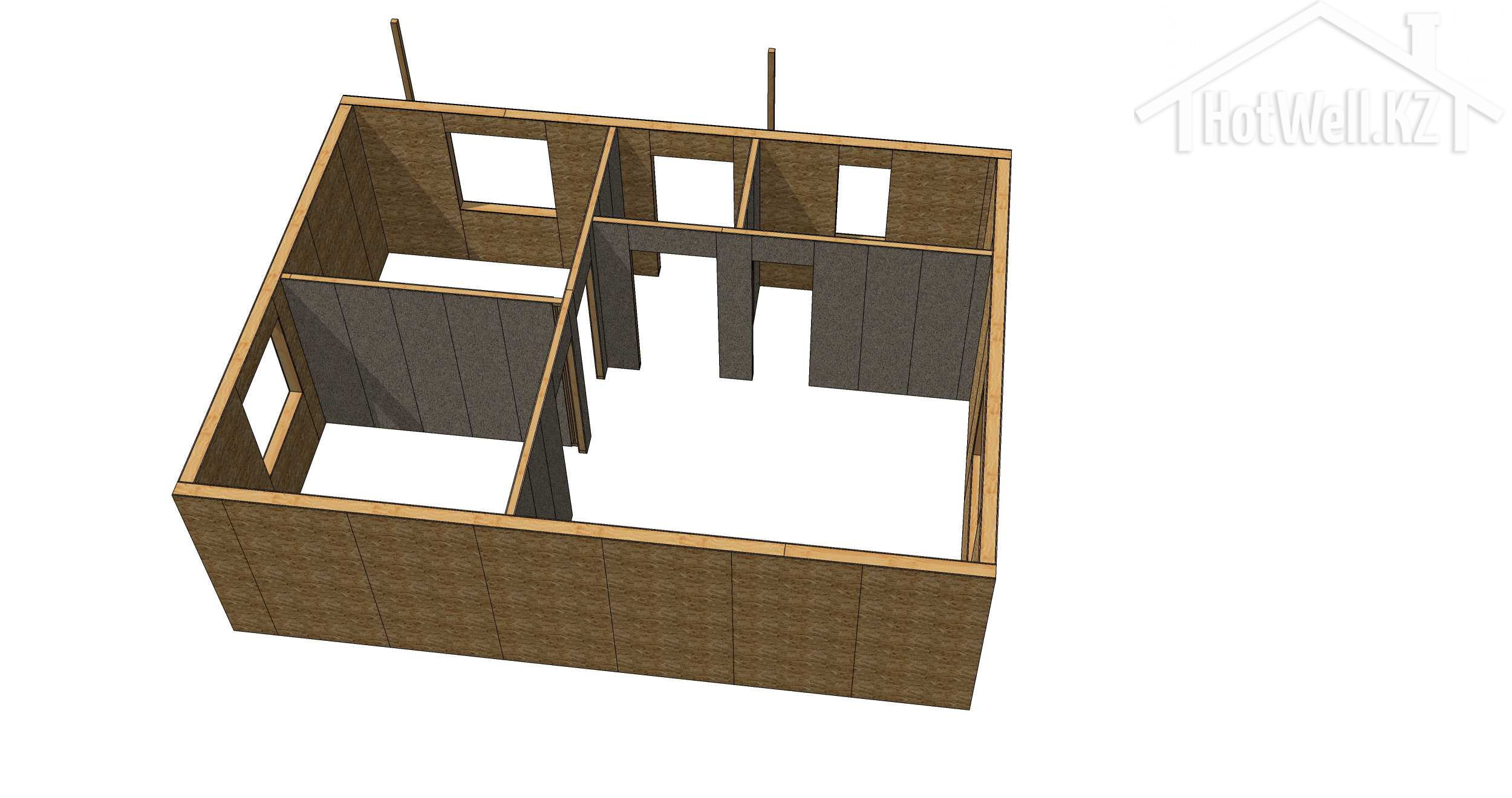 1. **Наружные стены из СИП панелей:** Эти панели служат основой для стен дома и обеспечивают отличную теплоизоляцию и прочность.