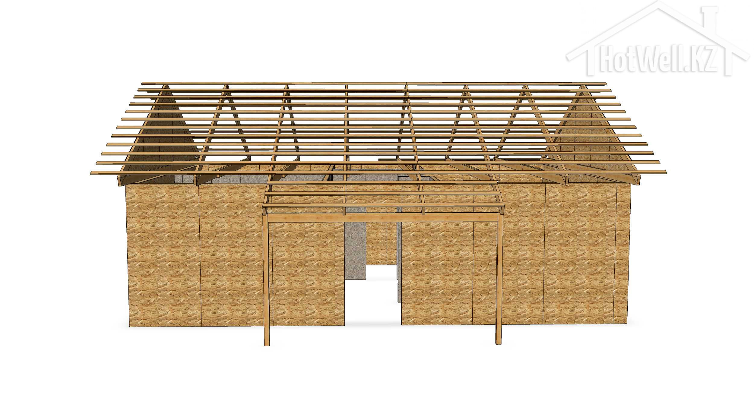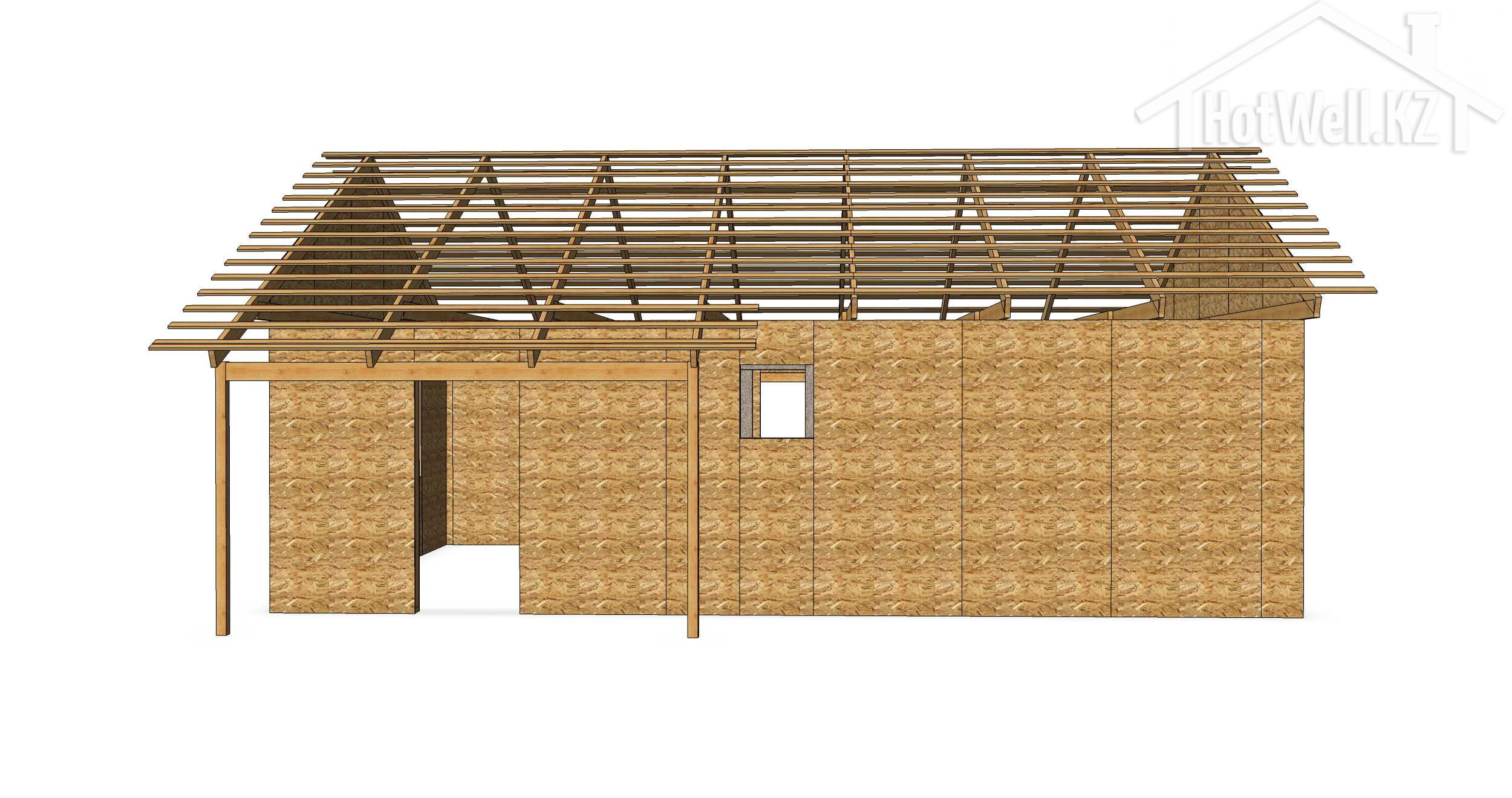 — **Крыша:** Крыша дома имеет 2 скатную форму, что помогает отводить воду и снег, обеспечивая надежную защиту от атмосферных воздействий.