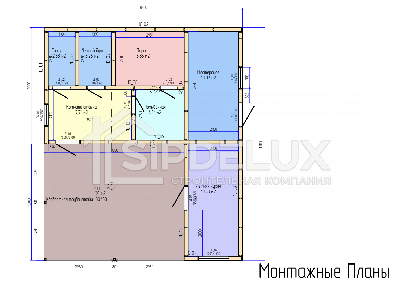 Проект С-50 представляет собой изысканную баню, построенную с использованием технологии СИП (Структурно-Изолированные Панели), которая обеспечивает превосходную теплоизоляцию и долговечность. Эта баня имеет площадь 50 квадратных метров и расположена на одном этаже с высотой потолка 2,5 метра.