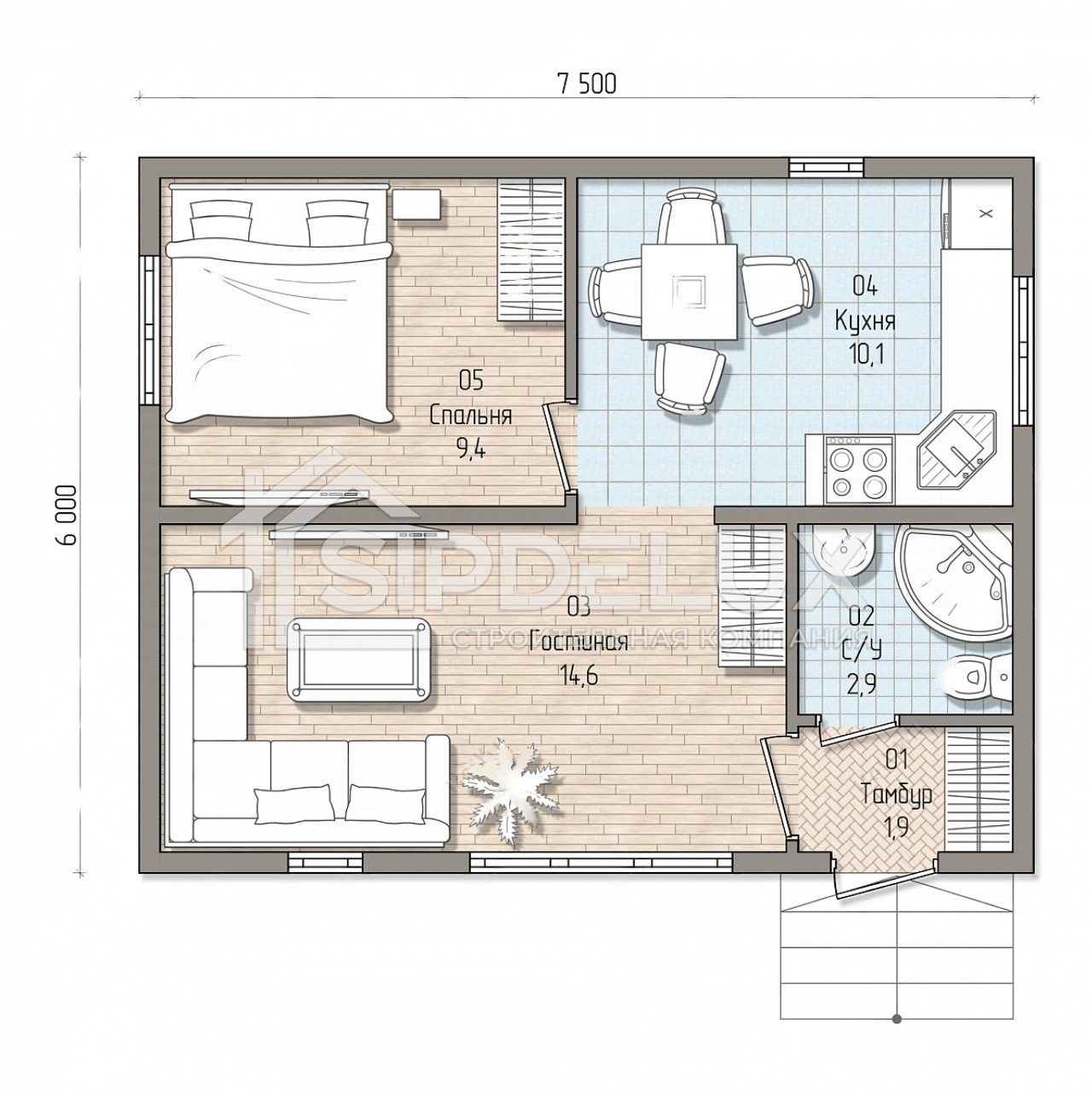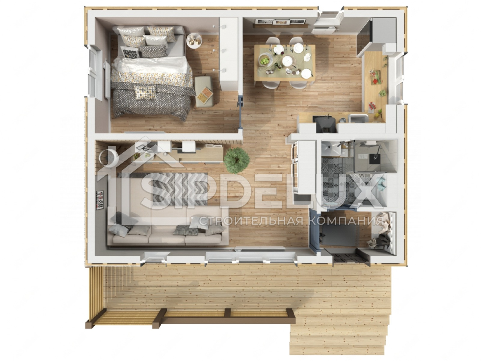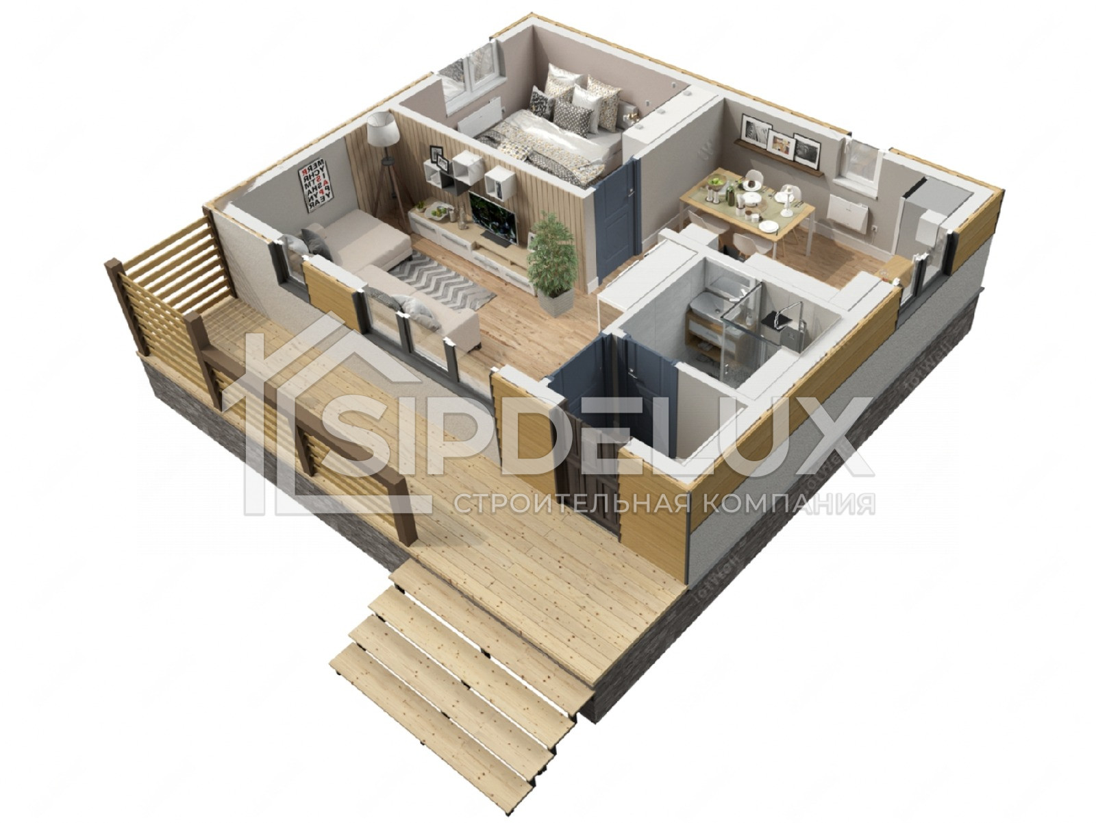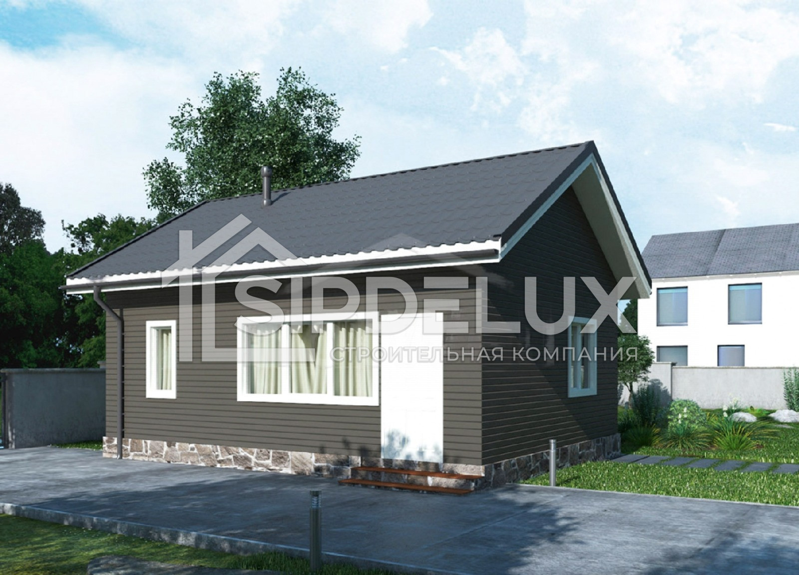 Проект дома Ч-45 представляет собой компактное и уютное одноэтажное жилье, построенное с использованием СИП-панелей (структурно-изолированных панелей). Вот подробное описание этого дома:
