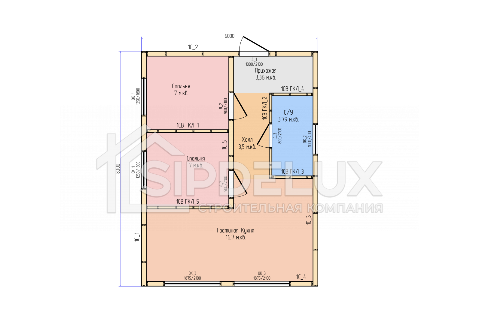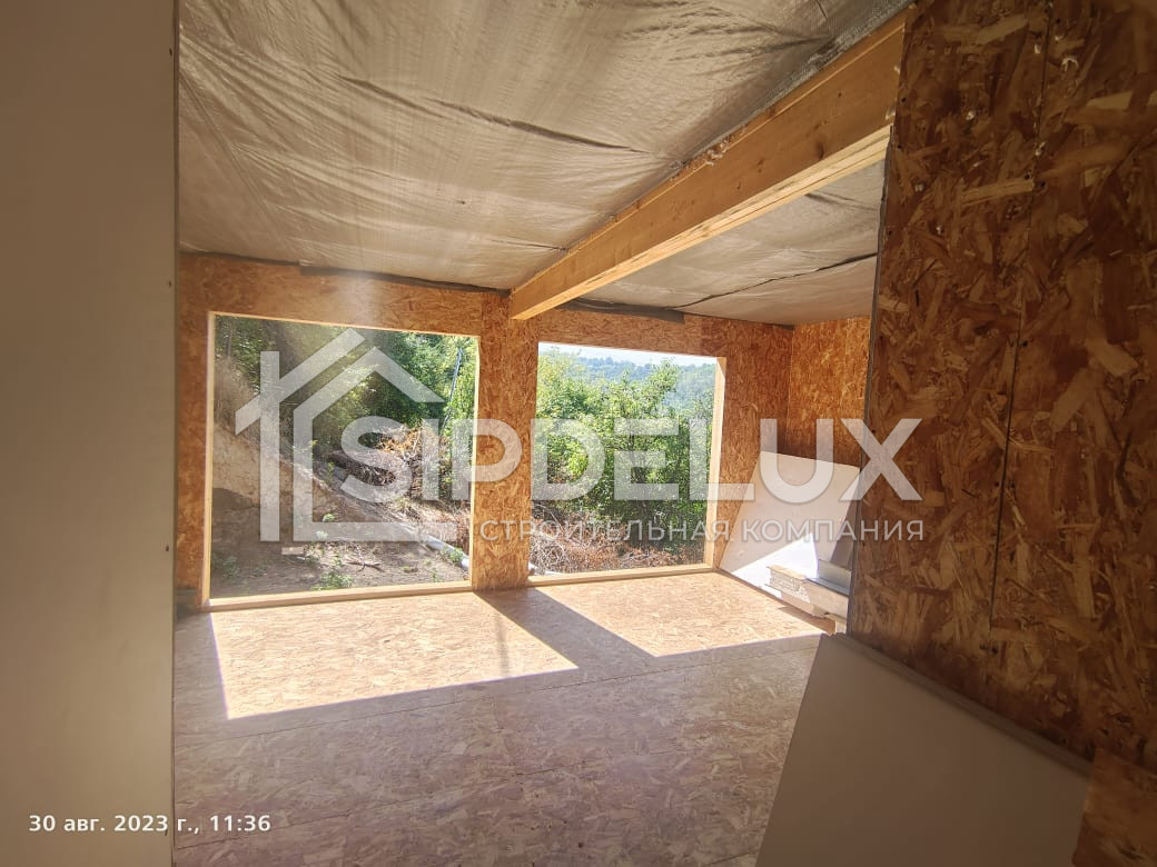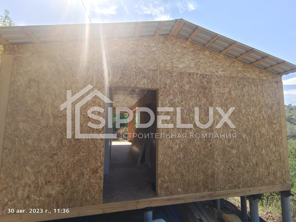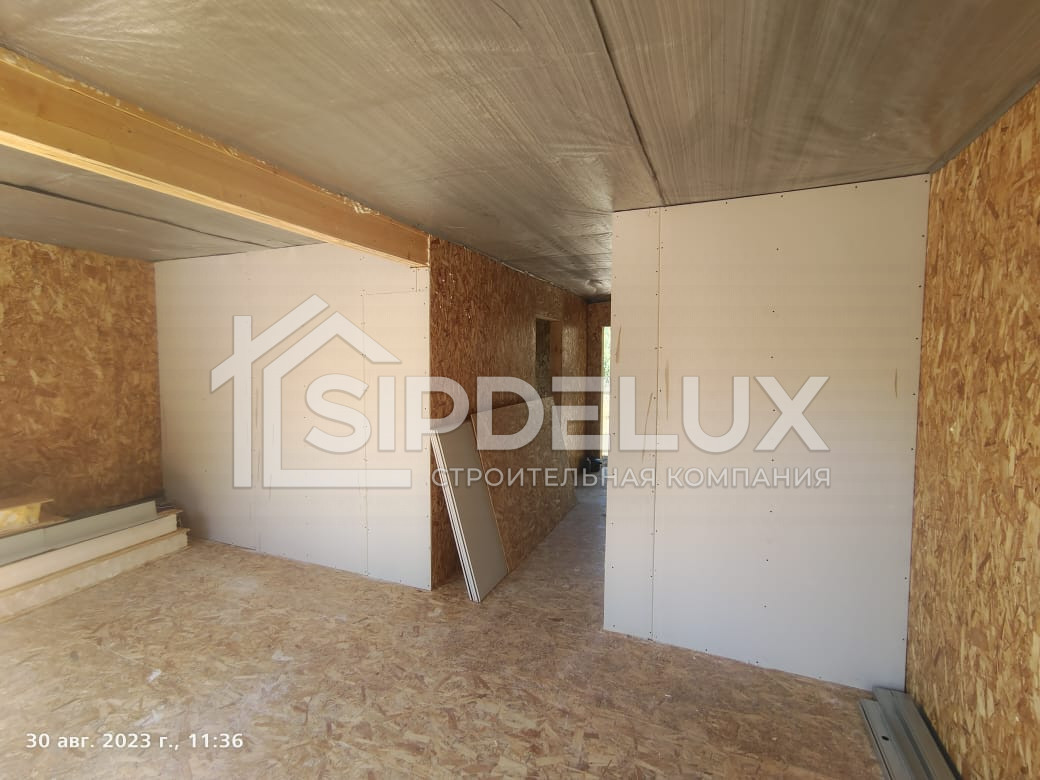 Внешние + внутренние несущие стены из СИП панелей SipDelux 158 мм (OSB-3 Толщина 9 мм, Пенополистирол ПСБ-С-20Ф)