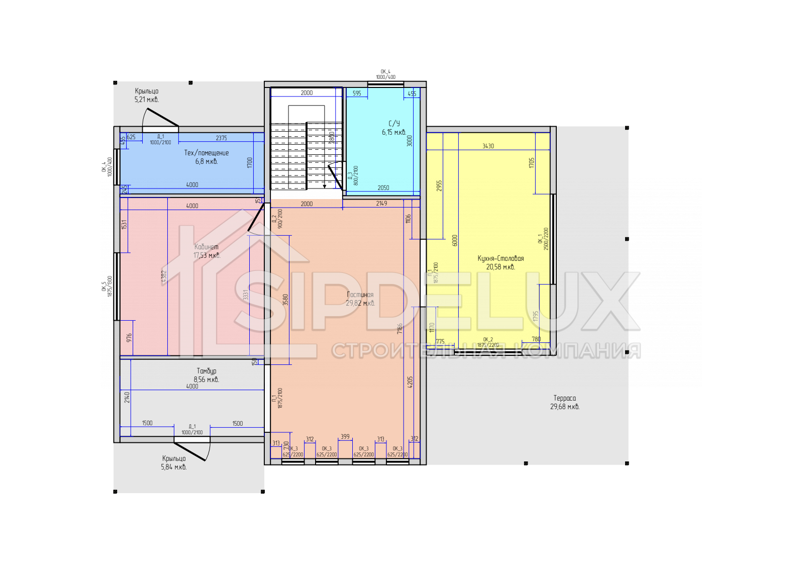 Внешние + внутренние несущие стены из СИП панелей SipDelux 158 мм (OSB-3 Толщина 9 мм, Пенополистирол ПСБ-С-20Ф)