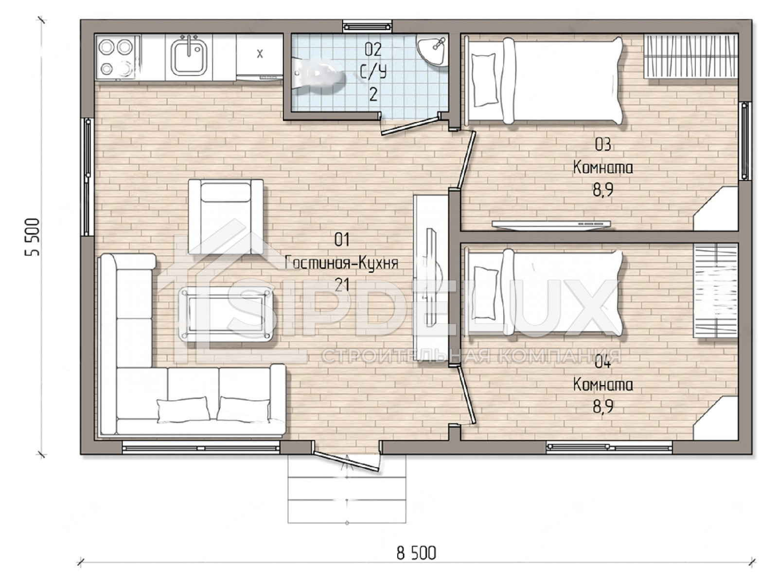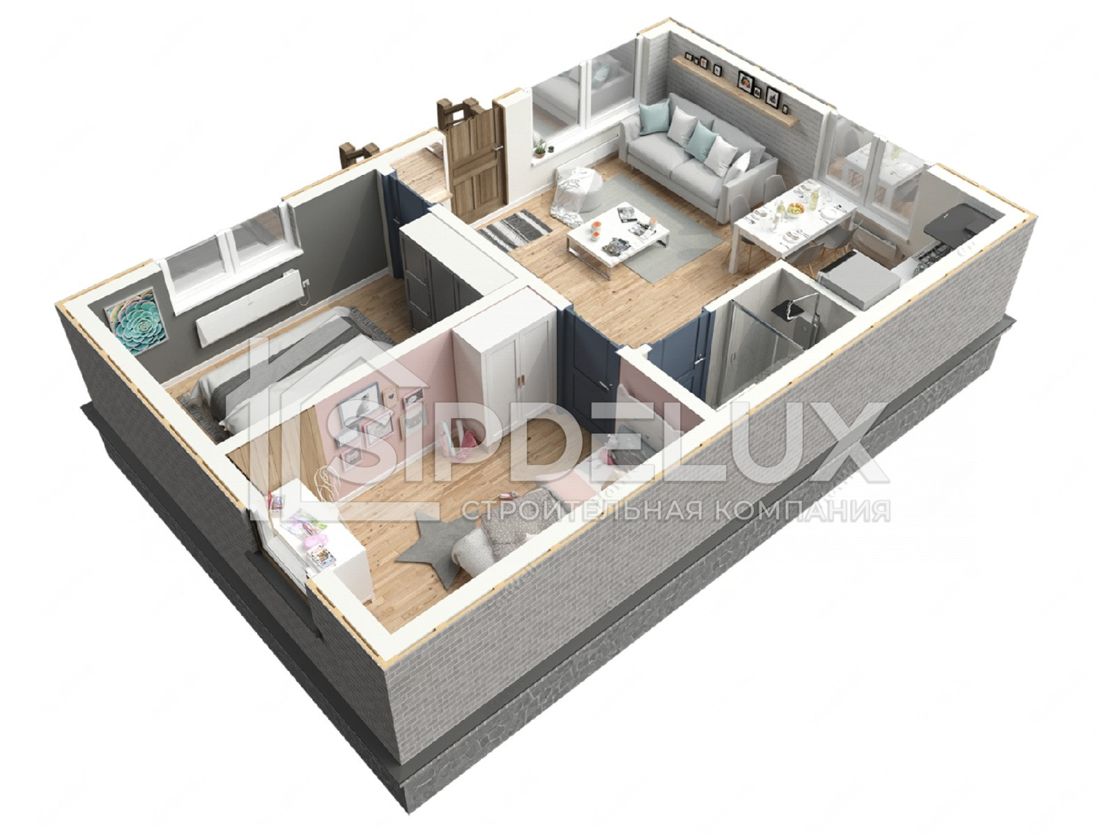 Внешние + внутренние несущие стены из СИП панелей SipDelux 158 мм (OSB-3 Толщина 9 мм, Пенополистирол ПСБ-С-20Ф)