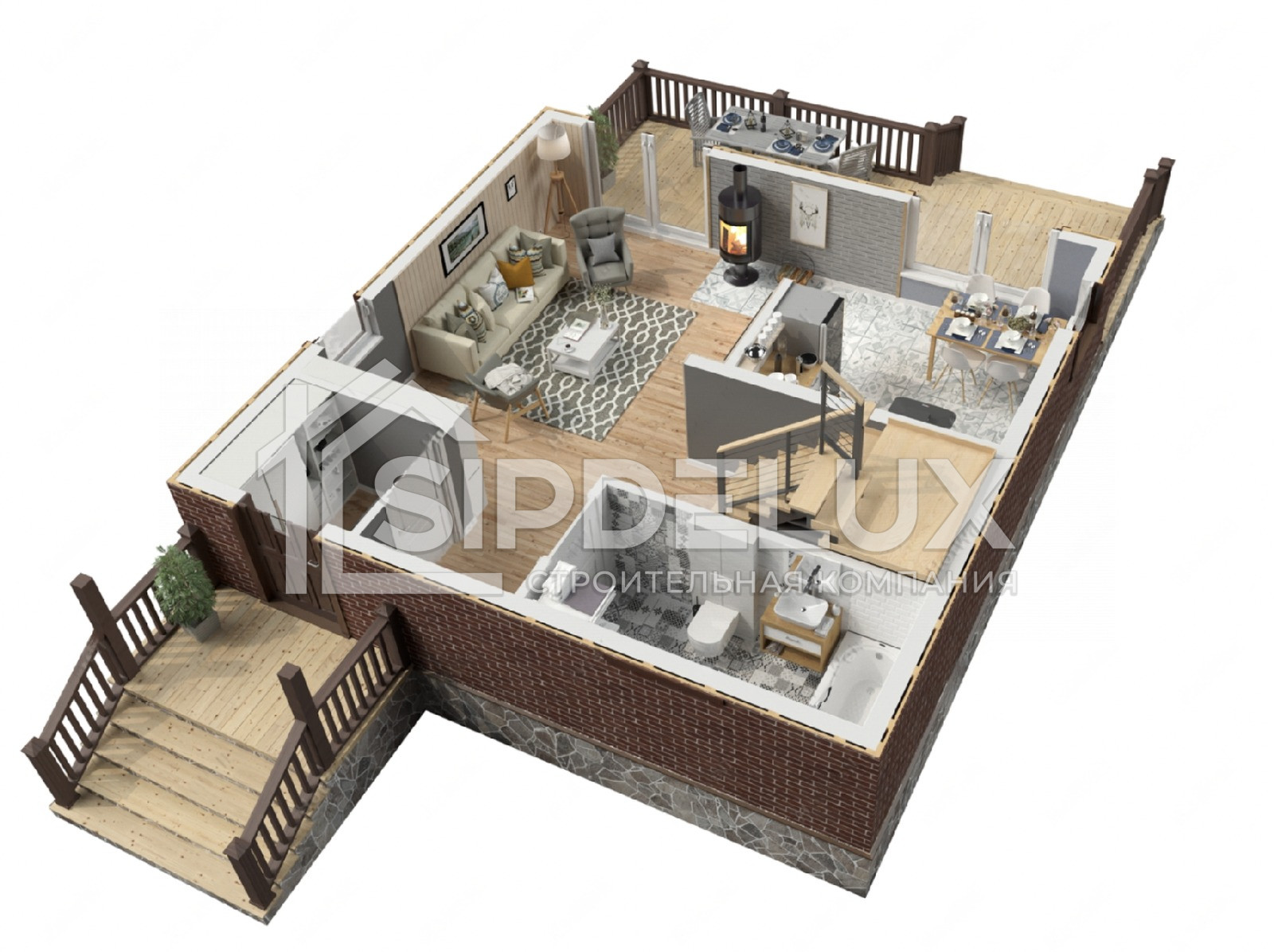 2. **Технология СИП-панелей:** Использование СИП-панелей обеспечивает отличную теплоизоляцию и энергоэффективность, что помогает снизить расходы на отопление и кондиционирование внутреннего пространства.