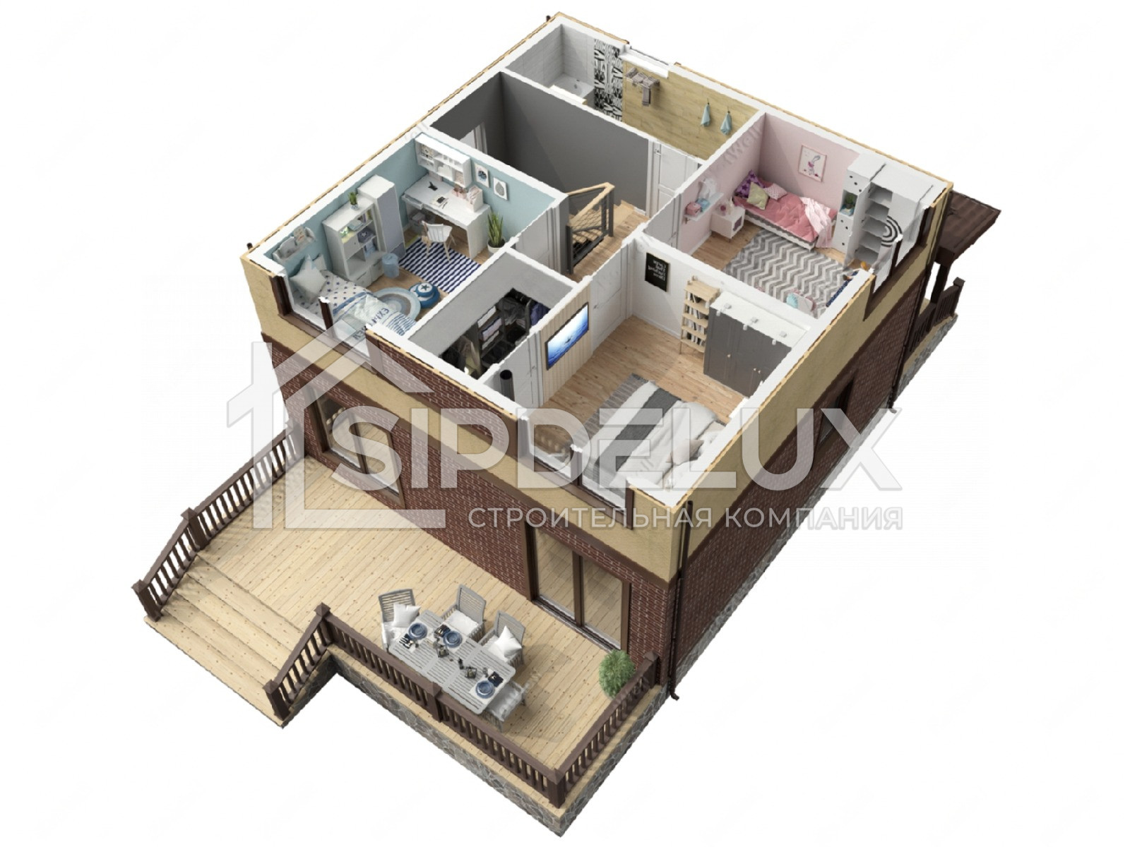 Внешние + внутренние несущие стены из СИП панелей SipDelux 158 мм (OSB-3 Толщина 9 мм, Пенополистирол ПСБ-С-20Ф)