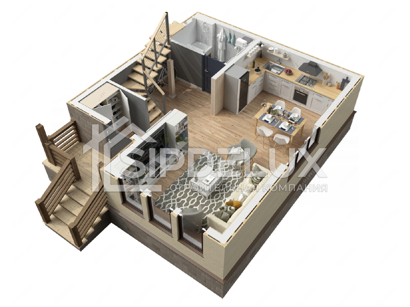 2. **Технология СИП-панелей:** Использование СИП-панелей обеспечивает отличную теплоизоляцию и энергоэффективность, что помогает снизить расходы на отопление и кондиционирование внутреннего пространства.