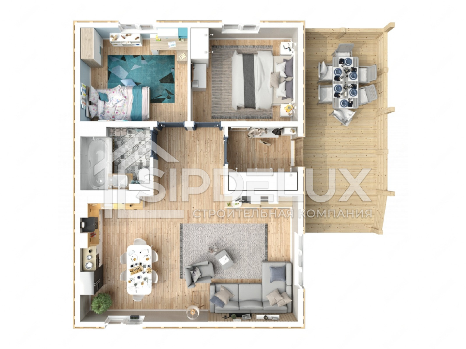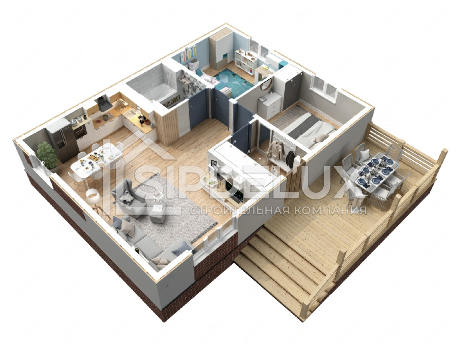 Внешние + внутренние несущие стены из СИП панелей SipDelux 158 мм (OSB-3 Толщина 9 мм, Пенополистирол ПСБ-С-20Ф)