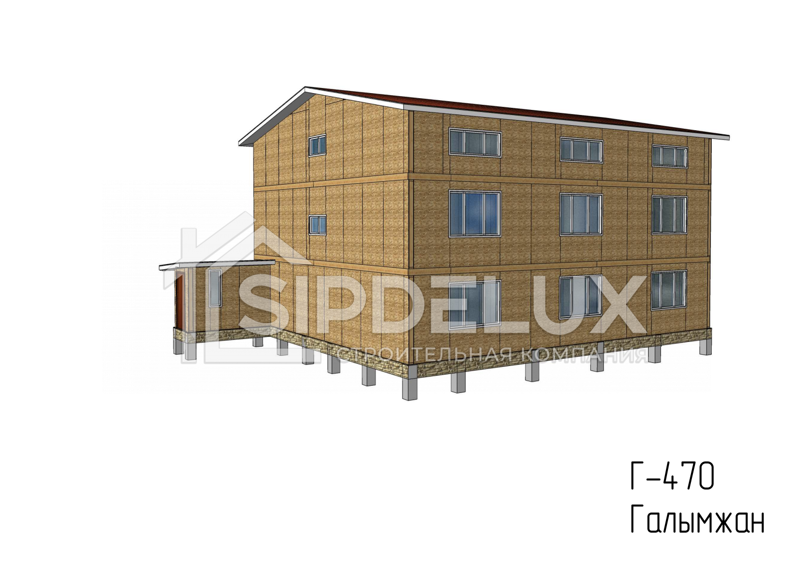 Проект Г-470 представляет собой современное общежитие, построенное с использованием инновационных СИП (Структурно-Изолированных Панелей) для обеспечения комфортного и эффективного жилья. Это общежитие обладает площадью 470 квадратных метров и состоит из трех этажей, общая высота каждого из них составляет 2,5 метра. Строение включает в себя 18 отдельных квартир и охватывает габариты 16,6 на 11,5 метров, а крыша имеет двускатную форму.