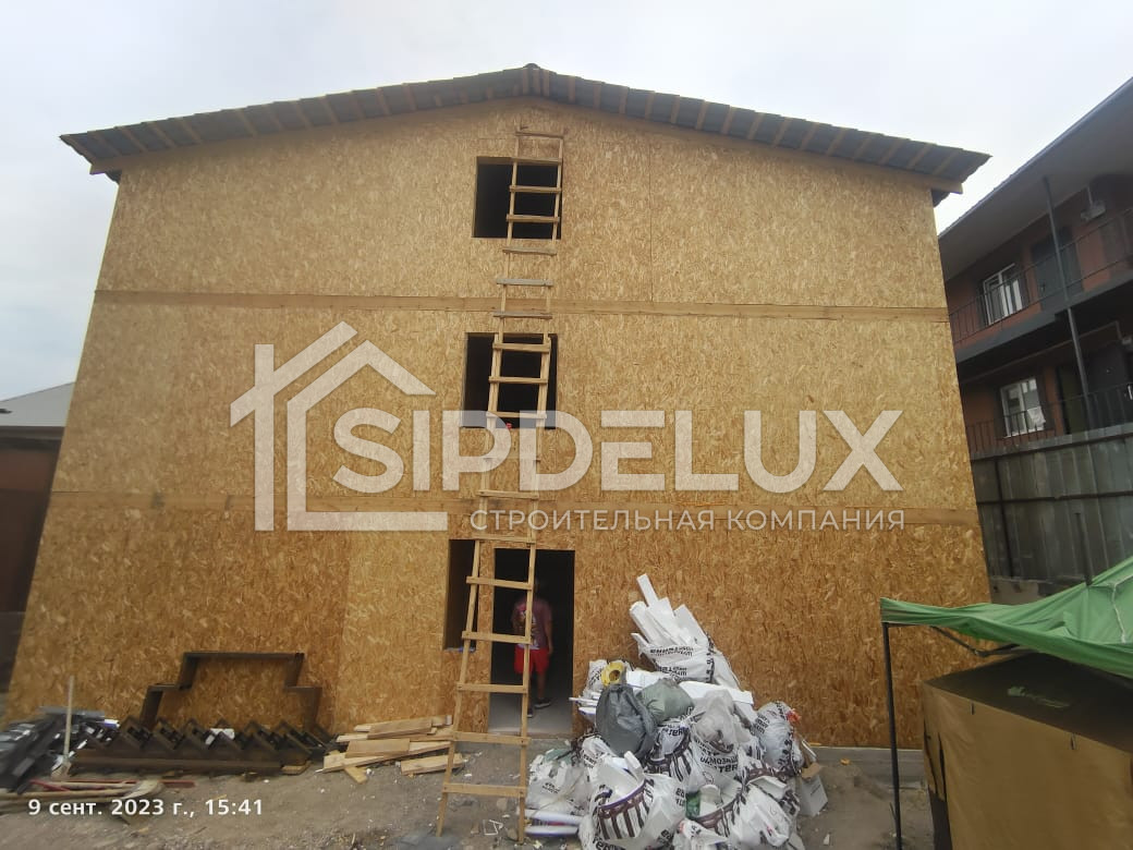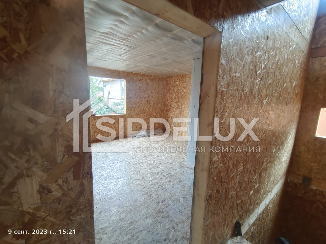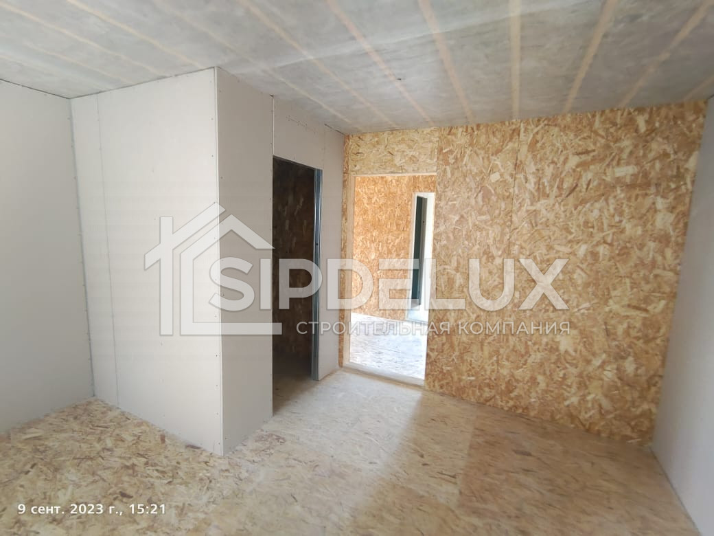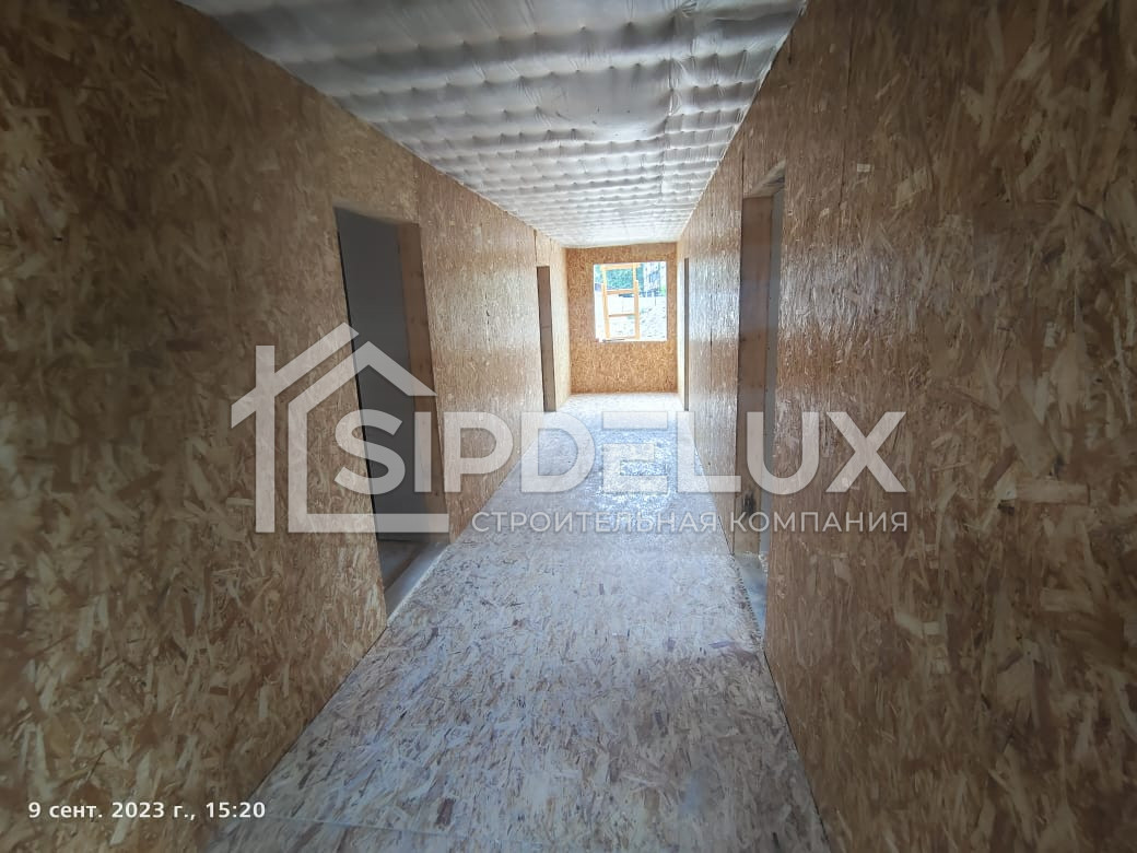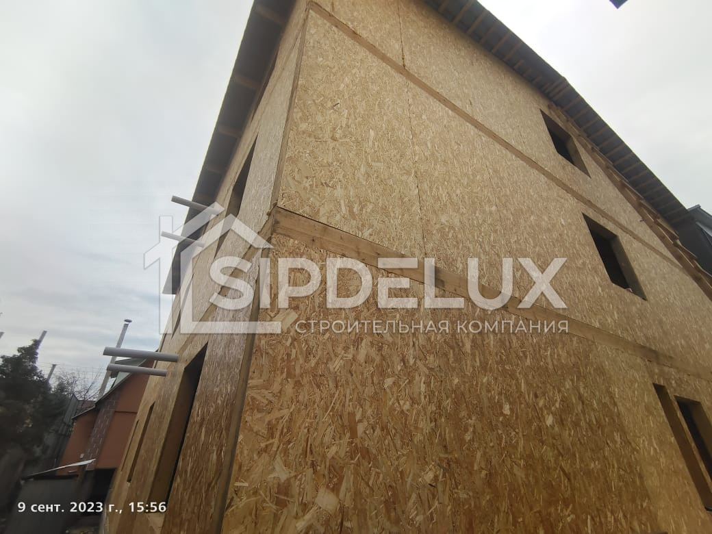 Внешние + внутренние несущие стены из СИП панелей SipDelux 158 мм (OSB-3 Толщина 9 мм, Пенополистирол ПСБ-С-20Ф)